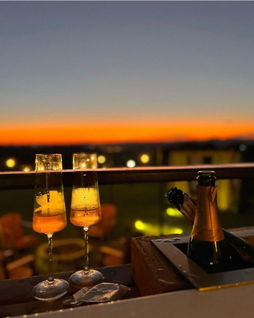Pegue a sua taça de vinho, suba em nosso mirante e observe tranquilamente o entardecer aqui!
